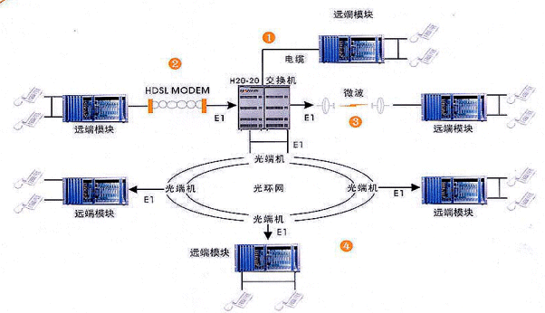 體系特點:利用廉價的HDSL設(shè)備,可以直接使用銅線長距離傳輸E1信號,可以實現(xiàn)1:64倍的擴容、線纜改造、提高線路利用率,并能夠簡化維護、方便管理。