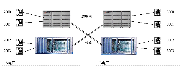 適用范圍:這種應(yīng)用適用于對電話系統(tǒng)安全性要求嚴(yán)格的場合,如電力系統(tǒng)行政交換機與調(diào)度交換機就可以以上述方式實現(xiàn)備份,從而實現(xiàn)行政或調(diào)度交換機某一臺不能工作時,依然可以通過備份系統(tǒng)打電話。