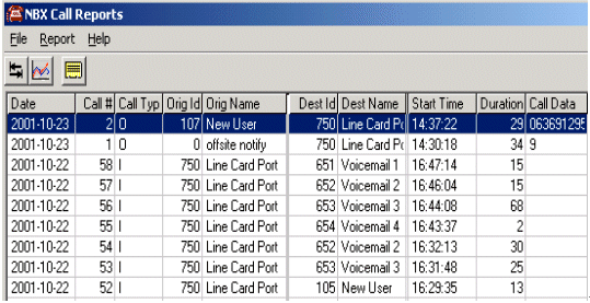 3Com公司的NBX系列網(wǎng)絡(luò)電話交換機(jī)具有強(qiáng)大的記錄、統(tǒng)計(jì)、輸出功能(CDR)。可以對(duì)通過交換機(jī)平臺(tái)呼入呼出的電話、語音信箱留言、自動(dòng)電腦話務(wù)員的訪問信息都記錄在案。只要通過NBX交換機(jī)所在局域網(wǎng)內(nèi)的任意一臺(tái)PC安裝查詢軟件,通過密碼認(rèn)證,就可以從NBX交換機(jī)下載電話記錄數(shù)據(jù)。