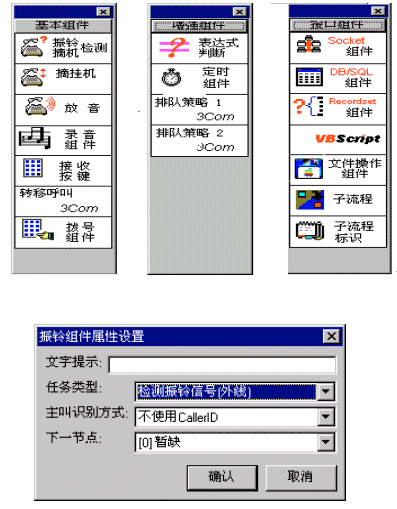 IVR:兩種方案的呼叫中心,目前的IVR系統(tǒng),均采用計(jì)算機(jī)語(yǔ)音卡方式進(jìn)行集成。這些語(yǔ)音板卡,既可以采用目前流行的板卡,也可以采用自行設(shè)計(jì)的板卡。利用廠商提供的API接口,開(kāi)發(fā)者可以編寫(xiě)各種語(yǔ)音流程業(yè)務(wù)。PBX交換機(jī)方案的IVR一般由PBX廠家作了主要的功能開(kāi)發(fā),使用者只須應(yīng)用、配置;谡Z(yǔ)音板卡的呼叫中心一般板卡廠家提供API接口,開(kāi)發(fā)者應(yīng)用開(kāi)發(fā)的靈活性較大。