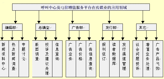 總之,借助呼叫中心及電信增值服務(wù)平臺,在受眾服務(wù)、受眾關(guān)系管理、新聞采編、社會調(diào)查、征訂和投遞、連鎖發(fā)行、電子商務(wù)乃至加強(qiáng)內(nèi)部管理等涉及到報(bào)社經(jīng)營的方方面面,報(bào)業(yè)經(jīng)營者都可以提高效率、降低成本、整合資源、開拓新的商機(jī)。