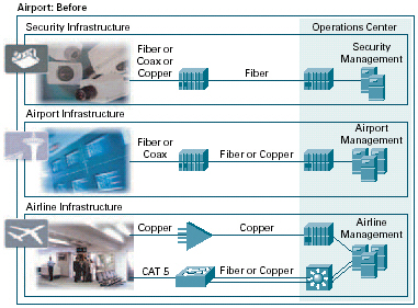 。。由于預(yù)算不斷波動、物理空間有限,且已對網(wǎng)絡(luò)基礎(chǔ)設(shè)施進(jìn)行了投資,當(dāng)前的機場和航空公司無法承受巨大的商業(yè)風(fēng)險。而由分立IT網(wǎng)絡(luò)元素組成的基礎(chǔ)設(shè)施極大地限制了改進(jìn)的能力,帶來了功能化信息孤井、重復(fù)應(yīng)用、專用航空公司系統(tǒng)、不同的網(wǎng)絡(luò)協(xié)議,以及昂貴、復(fù)雜的網(wǎng)絡(luò)設(shè)計和部署。