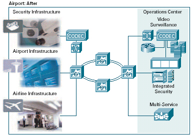 。。許多機場安全系統(tǒng)基于需人工協(xié)調(diào)提示和報警的不兼容應(yīng)用。通過在網(wǎng)絡(luò)上實現(xiàn)這些系統(tǒng)和在基于標(biāo)準(zhǔn)的通用基礎(chǔ)設(shè)施上傳輸信息,機場可實時關(guān)聯(lián)安全信息,并根據(jù)整體形勢作出立即行動。思科提供了一個強大的網(wǎng)絡(luò)基礎(chǔ)設(shè)施,可集成機場中的視頻監(jiān)視、其它物理安全設(shè)備和用于緊急響應(yīng)及通信的設(shè)備。無論設(shè)備使用有線還是無線連接,都可在所有類型的設(shè)備上實現(xiàn)語音、視頻和數(shù)據(jù)交換。