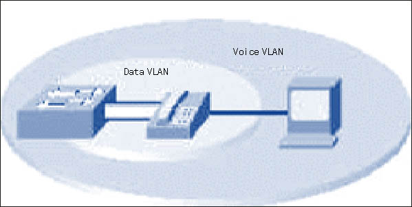 由于QoS、可擴展性、可管理性和安全性等原因,IP電話設備和IP數據設備應該部署在兩個邏輯上獨立的網段中。將IP語音與傳統(tǒng)IP數據網分離能大大提高抗攻擊能力,而且允許使用相同的接入層、核心層和分布層。
