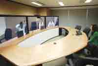 10月24日,在思科公司位于香港灣仔鷹君大廈的一間會(huì)議室,包括思科CEO錢伯斯在內(nèi)的六名高管已經(jīng)“坐”在橢圓型的會(huì)議桌一側(cè)!癏i!”隨著錢伯斯的一聲招呼,會(huì)議室內(nèi)的人這才發(fā)現(xiàn),正在講話的“錢伯斯”是在三塊連接起來(lái)的等離子屏幕上,而此刻他真實(shí)的位置是在思科位于美國(guó)硅谷的總部。65英寸的1080P高清晰屏幕上,錢伯斯等人的影像如真人大小,加上三塊屏幕被設(shè)計(jì)成會(huì)議桌的另外一半,讓人誤以為錢伯斯真的來(lái)到了香港。