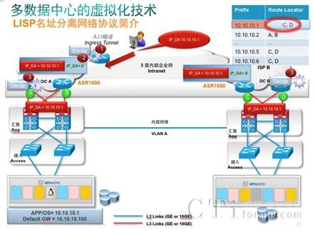 今天我們討論的主要是在虛擬化環(huán)境中如何通過(guò)網(wǎng)絡(luò)協(xié)議精確定位虛機(jī)的具體位置,LISP 解決方案解決了虛機(jī)移動(dòng)領(lǐng)域的一大難題,該功能允許一個(gè)子網(wǎng)的虛擬機(jī)成員,當(dāng)虛擬移動(dòng)到網(wǎng)絡(luò)任何地方,同時(shí)保留其IP地址不變,無(wú)需在主機(jī)上的任何變化,但網(wǎng)絡(luò)訪問(wèn)可以定位其精確位置并實(shí)現(xiàn)最優(yōu)路由,同時(shí)保持網(wǎng)絡(luò)的穩(wěn)定性和高可擴(kuò)展性。