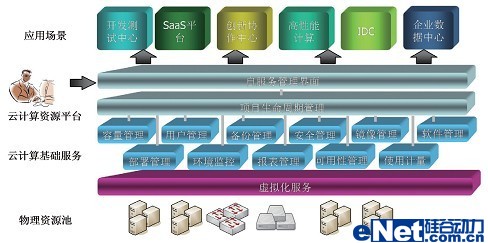 企業(yè)云通過(guò)采用硬件設(shè)備虛擬化、軟件版本標(biāo)準(zhǔn)化、系統(tǒng)管理自動(dòng)化和服務(wù)流程一體化等手段,把傳統(tǒng)的數(shù)據(jù)中心建設(shè)成為一個(gè)以服務(wù)為中心的運(yùn)行平臺(tái),資源的使用方式從專(zhuān)有獨(dú)占方式轉(zhuǎn)變成完全共享方式,運(yùn)行環(huán)境可以自動(dòng)部署和調(diào)整資源分配,實(shí)現(xiàn)資源隨需掌控,從而幫助客戶(hù)建立一個(gè)基于業(yè)務(wù)的資源共享、服務(wù)集中和自動(dòng)化的開(kāi)放數(shù)據(jù)中心。