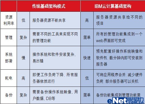 傳統(tǒng)IDC主要提供帶寬租用和機(jī)位租用服務(wù),服務(wù)種類(lèi)單一,競(jìng)爭(zhēng)激烈。云計(jì)算IDC借助IBM云計(jì)算管理平臺(tái),可以提供更多種類(lèi)的增值服務(wù),并提升利潤(rùn)率。增值服務(wù)包括: 云計(jì)算虛擬基礎(chǔ)架構(gòu)服務(wù)、SaaS(軟件即服務(wù))軟件訂購(gòu)服務(wù)等等。云計(jì)算IDC同時(shí)能夠簡(jiǎn)化IDC的管理,并迅速響應(yīng)客戶(hù)的需求。