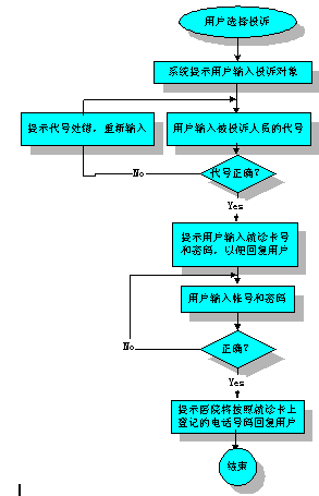 投訴可以自動(dòng)完成,提示用戶輸入投訴的科室和醫(yī)院服務(wù)人員的代號。