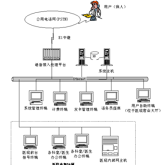 3、 系統(tǒng)需要跟醫(yī)院的人工掛號終端和自助掛號終端聯(lián)網(wǎng),電話掛號、自助掛號和醫(yī)院人工掛號三者必須結(jié)合起來,進(jìn)行統(tǒng)一排隊(duì)。其中自助掛號和人工掛號的排隊(duì)時(shí)間以手工輸入電腦的時(shí)間為準(zhǔn),電話掛號以電話輸入時(shí)間為準(zhǔn)。