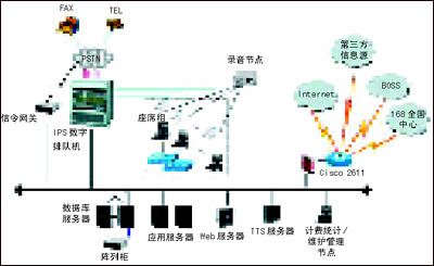 本項(xiàng)目采用新太科技交互式電話會議系統(tǒng)2.0版,系統(tǒng)各組成部分見圖1。前端接入設(shè)備采用SUNTEK-IPS數(shù)字排隊(duì)機(jī),負(fù)責(zé)多方電話會議用戶和其他業(yè)務(wù)用戶接入的交換排隊(duì)、自動語音資源提供、座席服務(wù)資源提供、錄音、計(jì)費(fèi)等等。SUNTEK-IPS數(shù)字排隊(duì)機(jī)是新太科技最新一代軟交換平臺,是整個系統(tǒng)平臺的核心。它綜合了新太科技?xì)v代平臺的優(yōu)勢,采用世界上最先進(jìn)的軟交換(包交換)技術(shù)和CompactPCI技術(shù),支持主控CPU卡冗余和熱拔插,擁有更大規(guī)模的交換系統(tǒng)總線(CompactPCI的CTBus總線共有4096個時隙,理論上,單個機(jī)框可以支持4k×4k的交換)。SUNTEK-IPS數(shù)字排隊(duì)機(jī)基于自主開發(fā),擁有自主產(chǎn)權(quán),保證了極高的性價(jià)比,已經(jīng)通過了信息產(chǎn)業(yè)部入網(wǎng)認(rèn)證。SUNTEK-IPS數(shù)字排隊(duì)機(jī)現(xiàn)已在十多個省成功開展全省業(yè)務(wù)的事實(shí),證明了它具備技術(shù)先進(jìn)、可靠性強(qiáng)等特點(diǎn)。