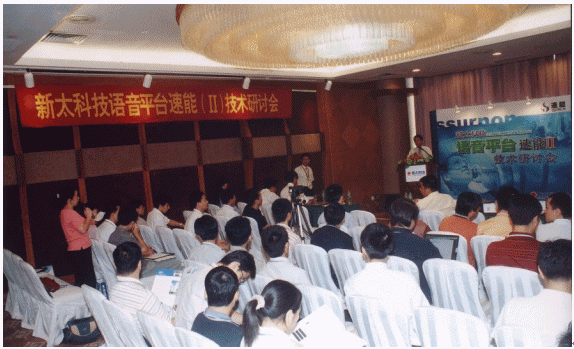 7月23日,新太科技在廣州花園酒店舉行"語音平臺(tái)速能II技術(shù)研討會(huì)"。新太科技執(zhí)行總裁梁平、副總裁何健明,開發(fā)中心副經(jīng)理張少文,營銷中心國際業(yè)務(wù)部副總經(jīng)理馬任遠(yuǎn)、產(chǎn)品經(jīng)理黃偉,新太科技合作伙伴Intel公司通訊產(chǎn)品業(yè)務(wù)部戰(zhàn)略客戶經(jīng)理林競宇,新太語音平臺(tái)速能產(chǎn)品核心代理商--廣州納特威科技公司總經(jīng)理黃淡輝,渠道總代理商--深圳意科特實(shí)業(yè)有限公司總經(jīng)理李面換等到會(huì)并作主題發(fā)言!吨袊(jì)算機(jī)報(bào)》、《計(jì)算機(jī)世界》、《SP計(jì)算機(jī)產(chǎn)品與流通》、IT168共四家專業(yè)媒體記者到會(huì)采訪。