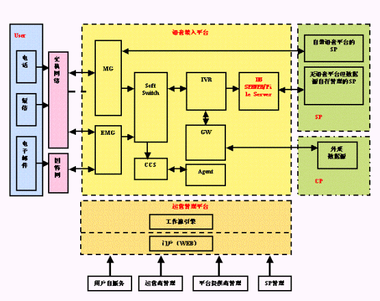 1、 IMSP平臺實(shí)現(xiàn)CTI+IN+IP技術(shù)特征融合,滿足業(yè)務(wù)層面需求多種資源,用戶提供同時包括語音、數(shù)據(jù)、視頻、無線的等業(yè)務(wù)在內(nèi)的綜合化服務(wù)。