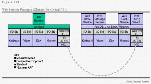 由于主要取決于業(yè)內(nèi)其他企業(yè)的接受,自身固定投資需求較少,操作平臺(tái)和應(yīng)用平臺(tái)成了價(jià)值鏈中最容易控制,相對而言也是爭奪最激烈的環(huán)節(jié)。做為最早理解了價(jià)值鏈的企業(yè),微軟在電信業(yè)內(nèi)正在積極復(fù)制自己在IT業(yè)的成功,希望獨(dú)占運(yùn)營價(jià)值鏈中的應(yīng)用平臺(tái),這就是其極力鼓吹的.Net概念。