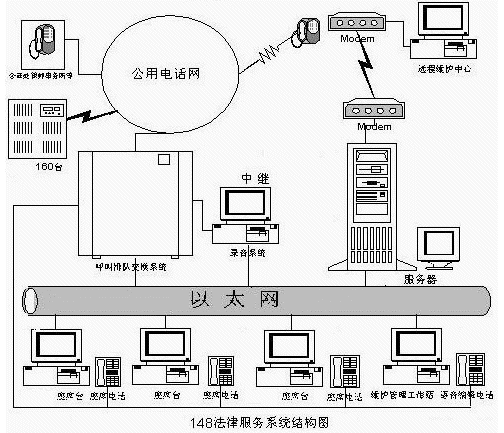 ZQ-148法律服務(wù)系統(tǒng)正是在這種大背景下應(yīng)運(yùn)而生的。它是以司法部和信息產(chǎn)業(yè)部《關(guān)于在各地開設(shè)法律服務(wù)專用電話的通知》文件精神為指導(dǎo)及相應(yīng)的《法律服務(wù)平臺(tái)技術(shù)方案》為依據(jù),采用當(dāng)今先進(jìn)的計(jì)算機(jī)電話集成技術(shù)和計(jì)算機(jī)網(wǎng)絡(luò)通訊技術(shù),在中企《中國(guó)法律法規(guī)數(shù)據(jù)庫(kù)大全》和中企綜合語(yǔ)音服務(wù)平臺(tái)的基礎(chǔ)上研制開發(fā)而成。該系統(tǒng)集法律咨詢、法律援助、電話會(huì)議、人員調(diào)度等多項(xiàng)功能于一體,是司法部門完善法律宣傳、開展普法教育活動(dòng)不可多得的系統(tǒng)。