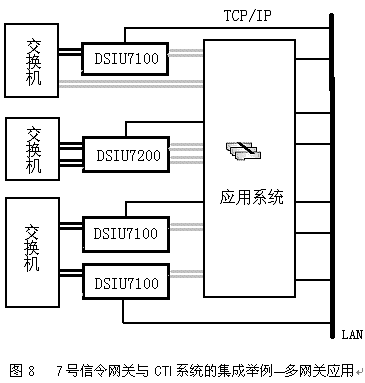 。。7號(hào)信令網(wǎng)關(guān)支持多條SS7信令鏈路。7號(hào)信令網(wǎng)關(guān)能夠檢測(cè)出攜帶SS7信令消息的時(shí)隙,加以處理,通過TCP/IP輸出到LAN上。相似地,7號(hào)信令網(wǎng)關(guān)從TCP/IP