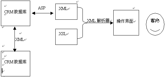 包括客戶資料,銷售報表等相關(guān)的客服信息都存儲在數(shù)據(jù)庫中,通過ASP應用程序取出需要的數(shù)據(jù)生成符合條件的XML文檔,再通過安裝在服務器端的XML解析器按照預先設(shè)定的排版樣式XSL解析XML文檔,最后生成符合條件的HTML格式的CRM操作界面呈現(xiàn)在客戶面前?蛻魯(shù)據(jù)可能來自不同的數(shù)據(jù)庫,并且都有各自不同的復雜格式。但客戶與這些數(shù)據(jù)庫間只通過一種標準語言進行交互,那就是XML。由于XML的自定義性及可擴展性,它足以表達各種類型的數(shù)據(jù)?蛻羰盏綌(shù)據(jù)后可以進行處理,也可以在不同數(shù)據(jù)庫間進行傳遞。