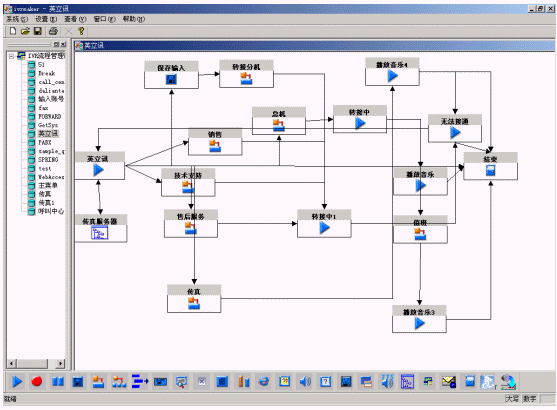IVR Maker是一個(gè)圖形化的業(yè)務(wù)流程生成環(huán)境,通過它可以生成新的IVR自動(dòng)業(yè)務(wù)流程或維護(hù)舊的流程,生成的流程能夠在線調(diào)試,調(diào)試好的流程可以在線加載到IVR上運(yùn)行。