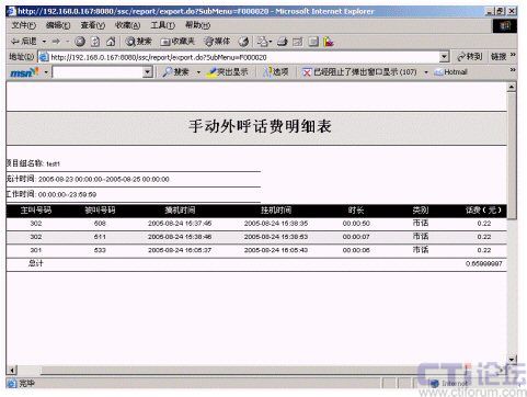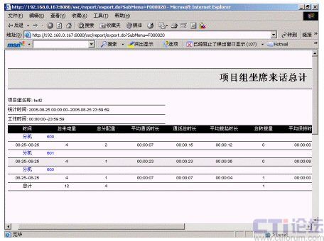 2.項(xiàng)目組外撥分析:包括手動(dòng)外呼話費(fèi)明細(xì)表、手動(dòng)外呼話費(fèi)總計(jì)表、項(xiàng)目組手動(dòng)外呼日?qǐng)?bào)告、項(xiàng)目組自動(dòng)外呼日?qǐng)?bào)告、項(xiàng)目組座席外撥總計(jì)、自動(dòng)外呼話費(fèi)明細(xì)表、自動(dòng)外呼話費(fèi)總計(jì)表、座席外呼日?qǐng)?bào)告等。該統(tǒng)計(jì)報(bào)表分別提供了針對(duì)手動(dòng)和自動(dòng)的外撥話務(wù)、話費(fèi)統(tǒng)計(jì),分類明確,統(tǒng)計(jì)方便。