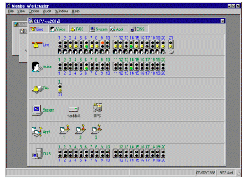 VoiceMaster的Monitor Workstation是一個(gè)為提供即時(shí)系統(tǒng)功能和動(dòng)態(tài)信息而設(shè)計(jì)的通用工具程序。監(jiān)控工作站(Monitor Workstation)顯示系統(tǒng)組件和系統(tǒng)操作特性、通訊線路、主控計(jì)算機(jī)的連接情況、不間斷電源(UPS)及磁盤容量等各自實(shí)時(shí)狀態(tài)的圖形簡報(bào)。當(dāng)有問題或出錯(cuò)時(shí)產(chǎn)生報(bào)警及警告信息來通知系統(tǒng)管理員。