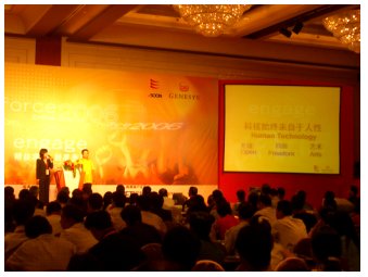 酷夏擋不住激情,eSOON與 Genesys再度攜手打造的G-force China 2006呼叫中心專業(yè)研討會于北京當(dāng)?shù)貢r間8月22日盛大召開,前來參會的業(yè)內(nèi)外人士共計(jì)超過550人,此次會議的成功舉辦預(yù)示國內(nèi)CRM產(chǎn)業(yè)將有新的飛躍。