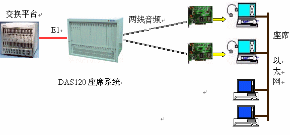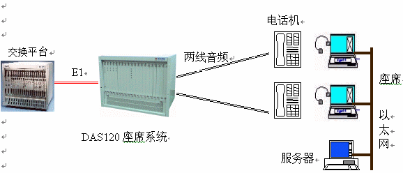 ·DAS120與交換平臺采用E1連接,信令為隨路信令CAS。