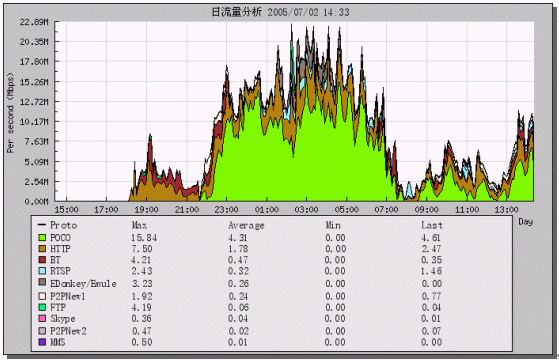 - 7月1日21點(diǎn)-2日7點(diǎn)是流量高峰期,主要為POCO和HTTP流量。POCO為一種下載工具,網(wǎng)吧用戶使用POCO在夜間大量下載信息;