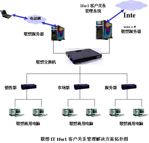 。。其實早在1998年,公司就開始了企業(yè)信息化管理的嘗試。公司建設(shè)了自己的局域網(wǎng),并開發(fā)出了專門的軟件系統(tǒng)。所有的客戶信息都要求錄入到這套系統(tǒng)中,銷售人員的工作記錄和銷售業(yè)績也要在系統(tǒng)中進行登記。只是這套系統(tǒng)的基礎(chǔ)數(shù)據(jù)還是以Word、Excel文檔的形式分別存在,且中間的數(shù)據(jù)缺乏統(tǒng)一接口,無法動態(tài)地反映公司整體的運營情況,很快就無法適應(yīng)公司業(yè)務(wù)發(fā)展的需要。在這種情況下,公司決定引進規(guī)范的客戶關(guān)系管理系統(tǒng)。經(jīng)過多方比較之后,公司選擇了聯(lián)想的IT 1for1客戶關(guān)系管理解決方案。