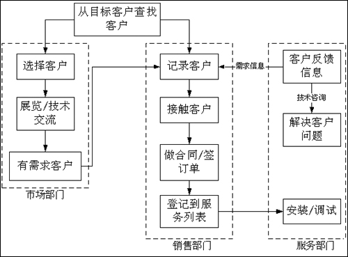 公司從很早就認識到經(jīng)營中存在的這些問題,一直在尋找解決的方法和途徑。我們逐漸認識到,公司經(jīng)營亟待解決的問題就是如何高效地處理客戶信息、有效地進行客戶關(guān)系的管理,這是影響到公司能否獲得更大發(fā)展的關(guān)鍵。因為在公司剛剛起步時,業(yè)務(wù)人員面對的是很少的客戶群,他們對每個客戶的具體情況非常熟悉,能夠根據(jù)每個客戶的不同需求特點提供相應(yīng)的產(chǎn)品和服務(wù)。而公司的管理人員面對的也是很少的業(yè)務(wù)人員,他們可以清楚地掌握每個業(yè)務(wù)人員的工作情況,并有針對性的加以監(jiān)督管理。公司的業(yè)務(wù)部門設(shè)置相對簡單,彼此的溝通和配合也比較容易進行。這時候幾乎不存在客戶的管理問題。但當公司的業(yè)務(wù)成倍增長后,業(yè)務(wù)人員和客戶的數(shù)量都空前膨脹,這時候簡單的管理手段就承擔不了如此沉重的管理任務(wù),公司的經(jīng)營就會出現(xiàn)混亂。突出的表現(xiàn)就是客戶、業(yè)務(wù)人員失控,公司的業(yè)務(wù)拓展陷入無序狀態(tài),失去繼續(xù)增長的動力。在這種情況下,要使公司的經(jīng)營走出泥潭,必須要引入的就是先進的客戶關(guān)系管理的觀念和手段。