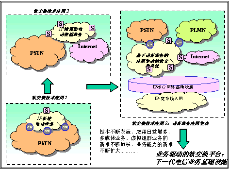 圖1:電信業(yè)務(wù)的發(fā)展需要業(yè)務(wù)驅(qū)動(dòng)的軟交換平臺(tái)的支持