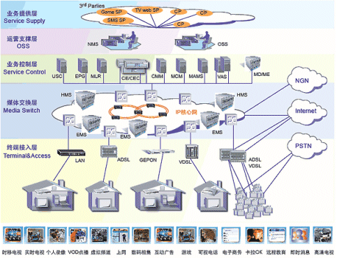- 開(kāi)展的節(jié)目:時(shí)移電視、直播電視、點(diǎn)播、寬帶、游戲、IP電話(huà)等;