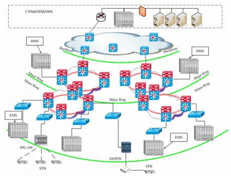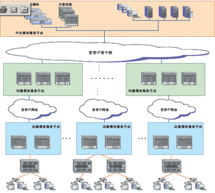 奔流(RollingStream)系統(tǒng)可以支持百萬(wàn)級(jí)別的用戶(hù)規(guī)模,支持3級(jí)和多級(jí)部署架構(gòu)。包括中心節(jié)點(diǎn)(CMS)、區(qū)域匯聚節(jié)點(diǎn)(HMS)以及邊緣服務(wù)節(jié)點(diǎn)(EMS)。奔流(RollingStream)系統(tǒng)對(duì)于寬帶IP網(wǎng)絡(luò)的容忍度是很高的,可以支持各種網(wǎng)絡(luò)承載形式,也可支持各種接入方式。如LAN接入、DSLAM接入、GEPON接入。對(duì)于IPTV系統(tǒng),可建設(shè)專(zhuān)網(wǎng),CMS和HMS、EMS直接相連,也可以旁?huà)煸诔怯蚓W(wǎng)上。另外,無(wú)論P(yáng)PPoE還是DHCP上網(wǎng)方式都可以支持。
