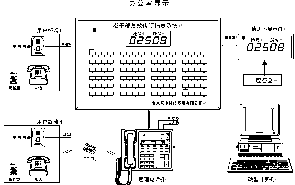 4、本系統(tǒng)配置了呼叫器直接呼BP機功能,方便了醫(yī)生與用戶的直接聯(lián)系。