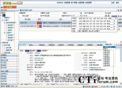 管理企業(yè)所有的目標(biāo)客戶和銷售員手中的意向客戶;知道銷售員與每個客戶的詳細(xì)進(jìn)展;幫助管理銷售員手中的重點客戶或快成交客戶;銷售員離職后客戶資料和他與客戶交往的所有記錄完整保留!
