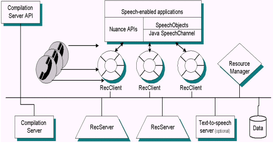 Nuance系統(tǒng)基于開放式客戶/服務(wù)機(jī)結(jié)構(gòu),特別為大型應(yīng)用程序所需的健壯性和可伸縮性而設(shè)計(jì)。呼叫者的講話由客戶端收集,而識(shí)別和鑒別處理的負(fù)載被平均分配到網(wǎng)絡(luò)上的多個(gè)分開的服務(wù)器上。
