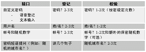 對Nuance方案,鑒別使用的密碼接口方案或類型都不受限制。各公司可自由選擇最適合于應(yīng)用系統(tǒng)的任何接口;如果以后覺得別的接口更加有效,用戶無需選擇新的技術(shù)提供商即可改變接口。聲紋鑒別中的這種靈活性和實用性是前所未有的。下表列出部分Nuance可實現(xiàn)的不同用戶接口: