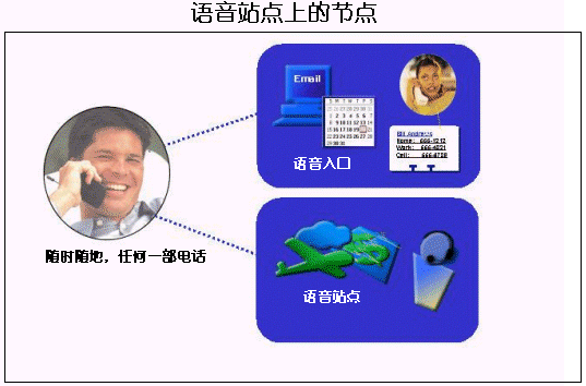 在語音網上,內容和服務將會以兩種方式出現(xiàn)即個人語音站點和語音入口。語音入口和語音站點都屬于網絡上的節(jié)點,這兩者由一個標準的語音瀏覽器連接起來,關于這部分內容,將在以后進行描述。