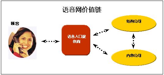 結構公司-技術軟件提供商(語音識別、位置標識)、主機公司和服務站、網絡發(fā)展商(網絡應用程序服務器、網絡整合工具)、軟件和平臺提供商和躉售網絡傳輸提供商。這些公司將與語音入口提供商建立公司對公司的關系。