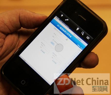圖:阮闖用自己的iPhone手機(jī)演示登錄集團(tuán)的信息化平臺(tái)非常方便。