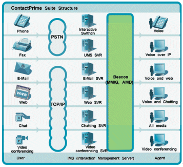 ContactPrime Beacon是ContactPrime系列產(chǎn)品中的一個(gè)組件,它是核心組成元件,可為CSR處理和提交各種多媒體,包括電話、傳真、電子郵件、VoIP、FoIP、語(yǔ)音郵件、Web交互、聊天、視頻會(huì)議及Web協(xié)作等。