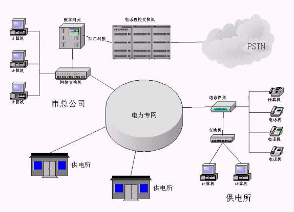 目前,某電力局在其境內(nèi)共有若干分支機(jī)構(gòu),分支機(jī)構(gòu)與總局之間目前都采用中國電信大網(wǎng)來實現(xiàn)機(jī)構(gòu)內(nèi)外話音通信要求,同時采用專線方式來實現(xiàn)相互間數(shù)據(jù)的傳輸.話費(fèi)開支始終高居不下.