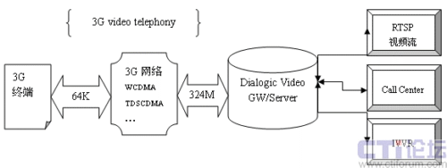 另一類(lèi)業(yè)務(wù),我舉個(gè)例子,像比較近的香港CSL移動(dòng)電視,也是通過(guò)3G視頻電話(huà)打進(jìn)去在IVVR的幫助下選擇頻道,IVVR和流媒體服務(wù)器相連,就可以向3G用戶(hù)播放實(shí)時(shí)視頻內(nèi)容了。流媒體服務(wù)器是來(lái)自互聯(lián)網(wǎng)的應(yīng)用,互聯(lián)網(wǎng)上的實(shí)時(shí)轉(zhuǎn)播通過(guò)RTSP技術(shù),我們的IVVR也是利用了RTSP技術(shù)與實(shí)時(shí)內(nèi)容進(jìn)行互動(dòng)。這就是所謂的3G視頻點(diǎn)播。