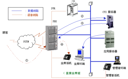 ④ 如果與顧客通話成功,則CIDS報(bào)告CTI服務(wù)器,CTI 服務(wù)器命令PBX將呼叫分配到當(dāng)前處于空閑的人工坐席,顧客信息將自動(dòng)彈出到坐席PC屏幕