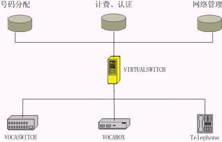 Virtual Switch 虛擬交換系統(tǒng)負責(zé)管理VOIP交換機(VOCASWITCH)、IP終端設(shè)備(VOCABOX,LANPHONE),提供和傳統(tǒng)電話業(yè)務(wù)相當(dāng)?shù)、基于IP的集中呼叫控制。
