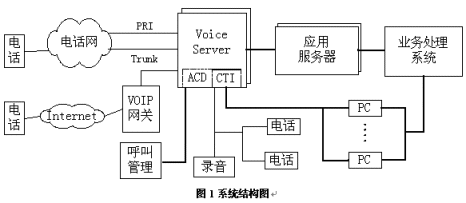 通過業(yè)務(wù)處理系統(tǒng),一方面為ACD系統(tǒng)提供基于產(chǎn)品信息、客戶信息的路由分配方式,為客戶提供更為迅速,更為個性化的服務(wù);另一方面為IVR、座席等系統(tǒng)提供數(shù)據(jù)庫訪問服務(wù)、文件服務(wù)。同時應(yīng)用服務(wù)器還提供認(rèn)證加密、系統(tǒng)管理配置、網(wǎng)關(guān)等功能。