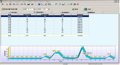 | 按時間統(tǒng)計 | 按照時間對來電以及計費(fèi)點(diǎn)進(jìn)行統(tǒng)計,并寫從下端的立體折線圖中看到所選的日期內(nèi)各個時間段的呼叫分布數(shù)。 |