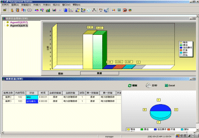 座席狀態(tài)實(shí)時監(jiān)控圖形顯示;線路狀態(tài)實(shí)時監(jiān)控圖形顯示;按時間以及不同條件進(jìn)行查詢的完善的歷史數(shù)據(jù)分類分析及統(tǒng)計;以統(tǒng)計報表形式提供中心各狀態(tài)及業(yè)績信息作為考評依據(jù);按Excel方式輸出報表,提供進(jìn)一步編輯功能。其所生成的上百張報表,可以協(xié)助企業(yè)有效管理資源,檢查成本,預(yù)測改善現(xiàn)有運(yùn)作的潛在需求。