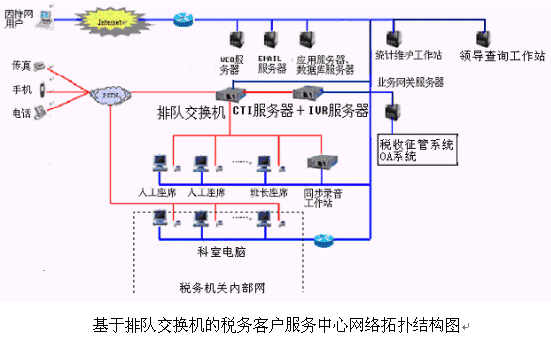 對于20個以下人工座席的中小型稅務(wù)客戶服務(wù)中心系統(tǒng),則建議使用基于計算機語音板卡的方式,可以減少投資,同時具有良好的系統(tǒng)性能;對于大型的稅務(wù)客戶服務(wù)中心系統(tǒng),可選用排隊交換機作為語音接入設(shè)備,以保障系統(tǒng)的高可靠性和穩(wěn)定性;大大提高了系統(tǒng)的適應(yīng)面。