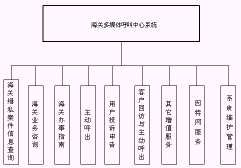 海關多媒體呼叫中心系統(tǒng)的功能結構如下圖所示: