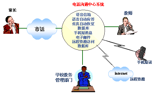 為此,很多學校都建立了自己的網(wǎng)站來作為對外宣傳和溝通的窗口,同時,不少學校還建立了校園網(wǎng),但僅僅通過INTERNET來獲取相應(yīng)的學生信息和學校信息是不夠的,畢竟不是每個家長都上網(wǎng)的,就算上網(wǎng)也只是偶爾,不能達到和學校經(jīng)常溝通的效果,尤其是在不很發(fā)達的地區(qū)這種現(xiàn)象尤為明顯。因此學校與家長的溝通必須建立在一種十分普及的通訊方式基礎(chǔ)上,而當前最為普及的通訊方式莫過于電話了。